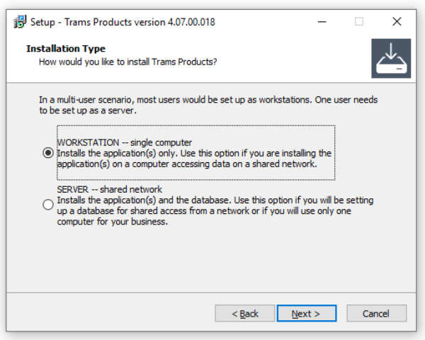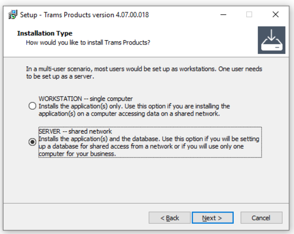 - If Trams will only be used on one computer, choose Server.