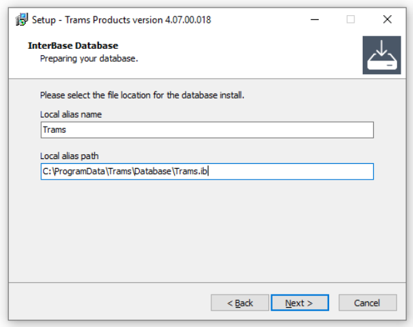 After installation is complete, a blank database with the filename of Trams.ib is created.
